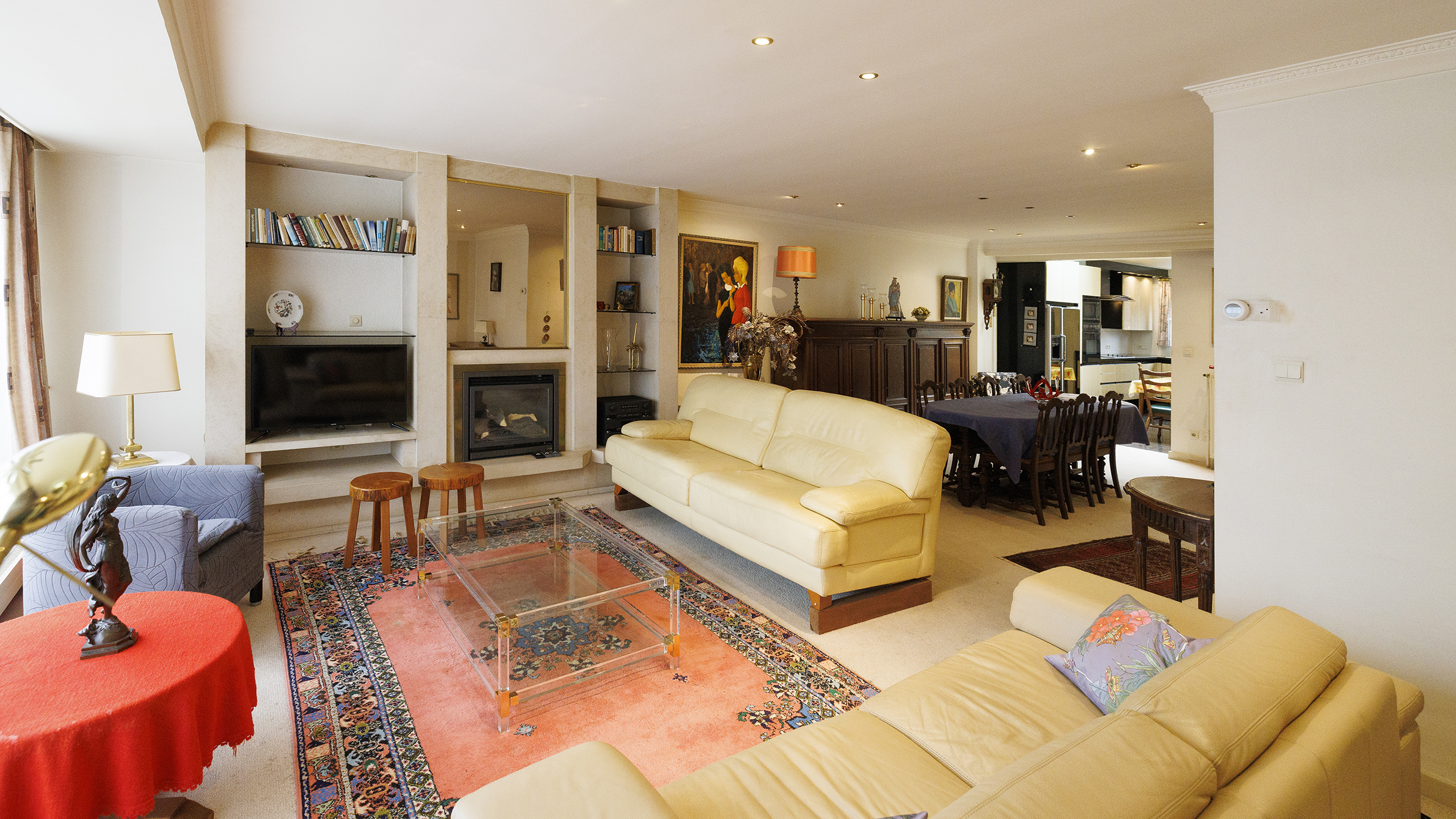 Via uw eigen, aparte inkom bereikt u via een stijlvolle houten trap de eerste verdieping. Een dubbele glazen deur zorgt voor een open, lichtrijke hall en geeft toegang tot de verrassend grote leefruimte met een prachtig uitzicht over de Grote Markt. De gezellige living, uitgerust met een sfeervolle gashaard, vormt het perfecte decor voor ontspannen avonden.