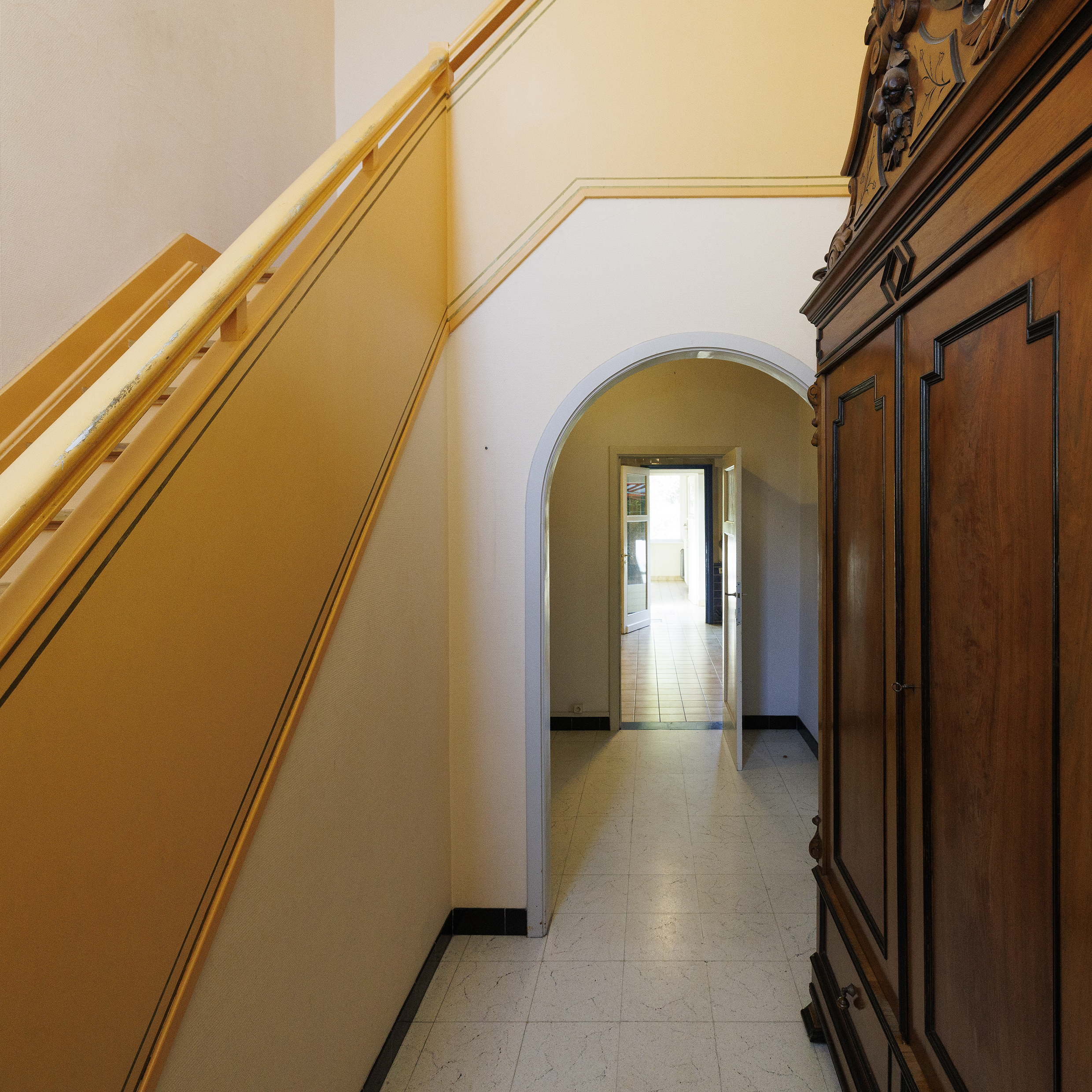 Via de imposante inkomhal betreedt u deze statige woning, die meteen indruk maakt met haar warme uitstraling. Vanuit de hal heeft u toegang tot de lichtrijke leefruimte met schitterend authentiek visgraatparket, evenals tot de ruime leefkeuken.